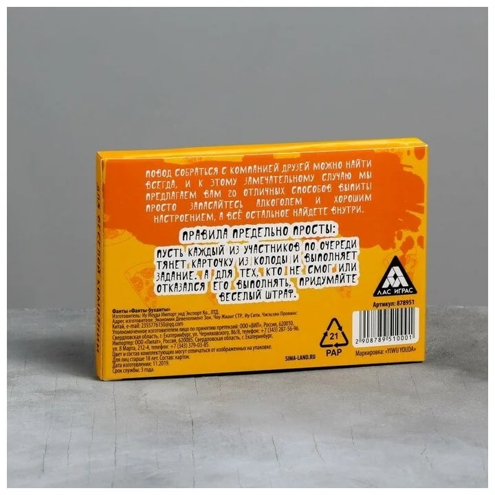 Купить игра для компании "фанты буханты" 20 карт от 100 руб. с доставкой до пункта выдачи в Дигоре. Интернет магазин ДекаМаркет. Оплата при получении.