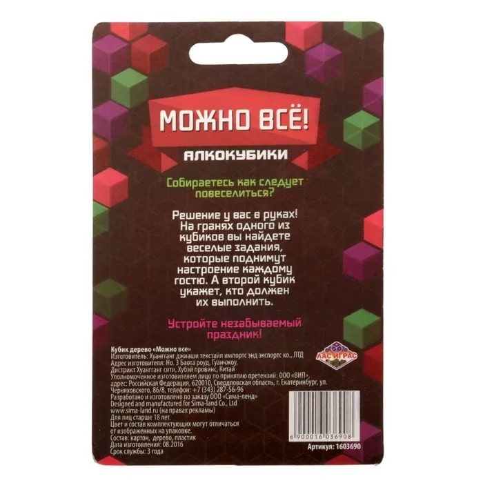 Купить кубик "можно все", алкокубики для принятия решений от 60 руб. с доставкой до пункта выдачи в Дигоре. Интернет магазин ДекаМаркет. Оплата при получении.